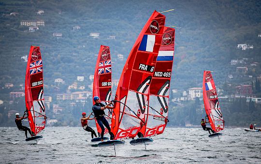 A drizzly and slow wake up on the last morning of the IQFOiL International Games in Campione, Lake Garda, organised by Univela sailing, Società Canottieri Garda Salò and the iQ FOiL Class; but the sun, just like the excitement, was just behind a thin layer of clouds, as the knock-out Medal Series were in sight.
